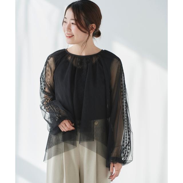 ルクールブラン(le.coeur blanc)/《手洗い可能》チュール刺繍ブラウス