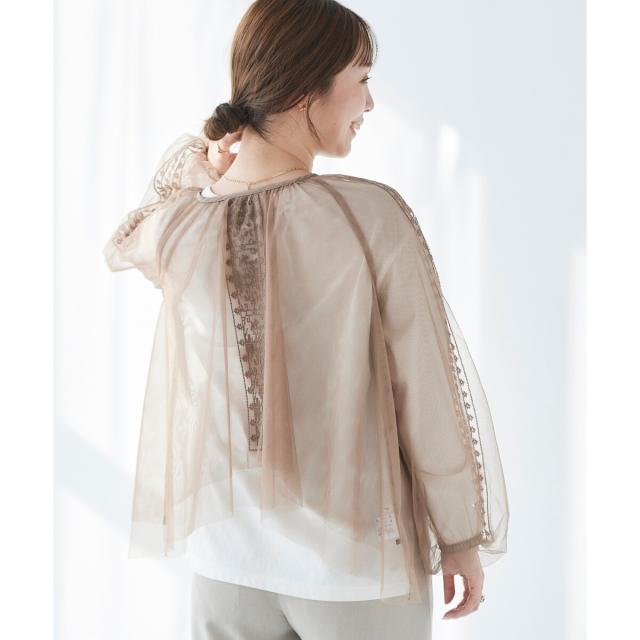 《手洗い可能》チュール刺繍ブラウス