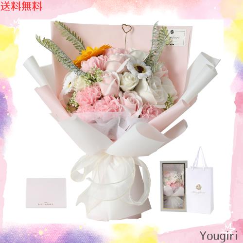 ?BOX入りソープフラワー:すぐにお渡しできるよう専用のボックスをお付届け致します。ギフトとしての見栄えもばっちり。バックサイズ:約38x 20 x 12cm、花束サイズ:約32×16×9cm、総重量:約550g。無料でメッセージカード付き。伝えたい気持ちに合わせてご自由にお書きいただけます。