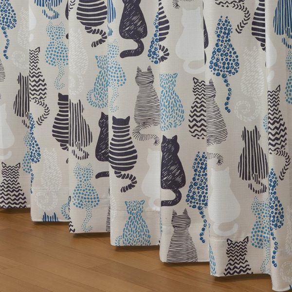 (キーワード: 高級 流行 デザイン おしゃれ オシャレ 耐久 清潔 機能 遮光 TCC588816 RDA0003589978 4711421 インテリア 寝具 カーテン ブラインド カーテン ブラインド 収納 軽やかな猫柄カーテン4枚セット 非遮光で洗える ウォッシャブル インテリア雑貨 タッセル付きで華やかに 形状記憶で美しいシルエットをキープ 幅100×長さ135cm 風を感じる軽やかさと猫好きにはたまらないデザイン 可愛らしく演出 青)