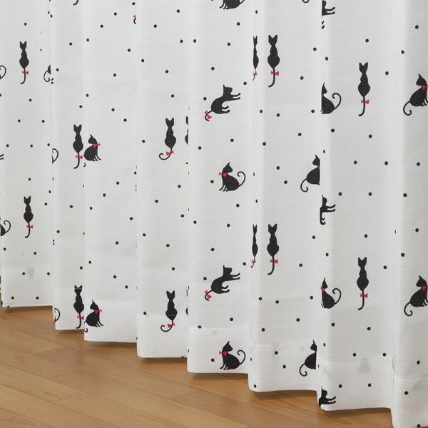 風合い軽やかな、洗える ウォッシャブル 猫柄カーテン4枚セット 非光沢で形状記憶、タッセル付き 幅100×長さ135cmのドレープ・レース各2枚 にゃーとニャンが可愛いミックス柄で、インテリアを彩る カーテン 4枚セット 約幅100×長さ135cm 猫柄 ドレープ・レース×各2枚 洗える ウォッシャブル タッセル付き 形状記憶 にゃーとニャン ミックス