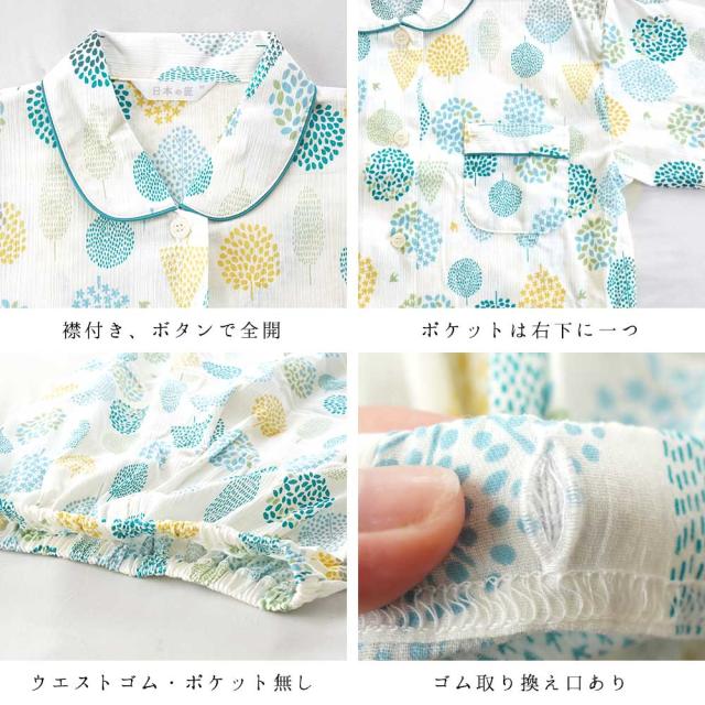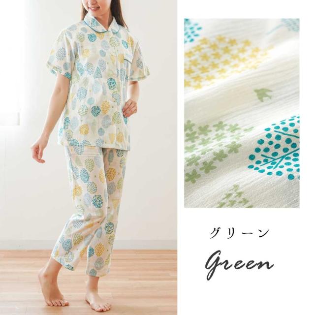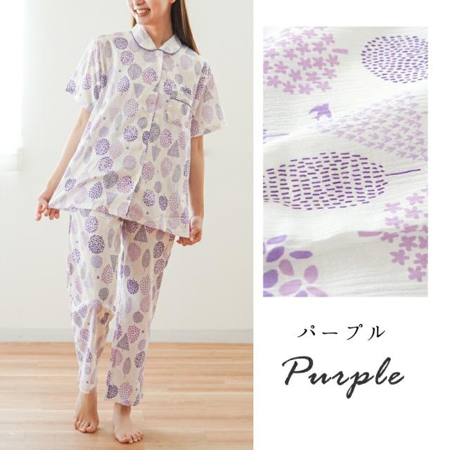 [keyword|パジャマ レディース 綿100% 楊柳 日本製 国産 半袖 長ズボン 衿付き ボタン ゴム 前開き 婦人 M L 柄 春 夏 日本の匠 ナイトウェア 母の日 ギフト プレゼント 贈り物 さらさら 涼しい 着やすい 北欧柄 グリーン パープル]