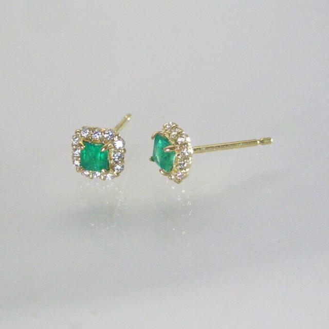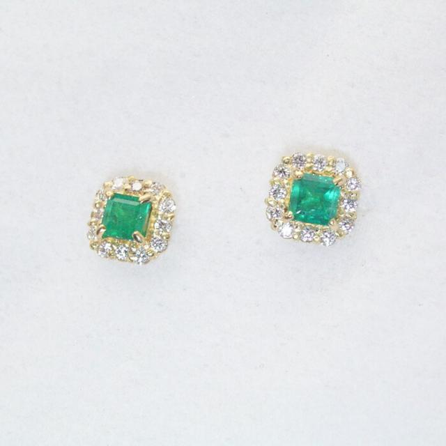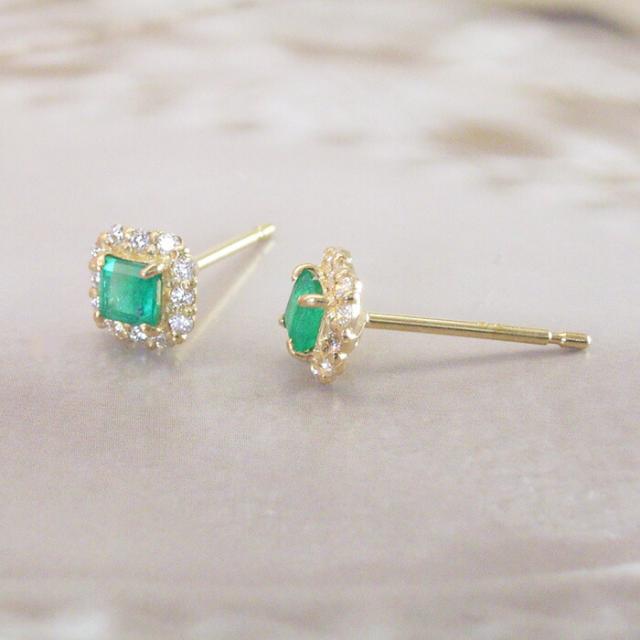 ピアス k18 18金 エメラルド 天然 ダイヤモンド ピアス 取り巻きダイヤ アクセサリー 品番at-021 2営業日前後の発送予定