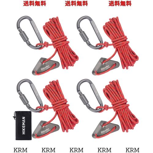 テントロープ パラコード カラビナ付き 調節可能 タープロープ ガイライン 張り綱 反射材入り 太さ 4mm 長さ4M 自在金具 4個セット キャ
