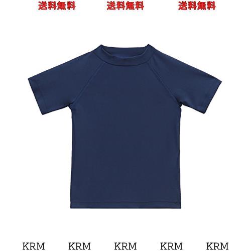 [ESTAMICO] キッズ 半袖 Tシャツ ラッシュガード UVカットUPF+50 男の子 水着 (ネイビー, 130cm/6T)