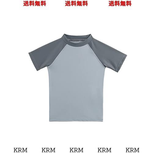[ESTAMICO] キッズ 半袖 Tシャツ ラッシュガード UVカットUPF+50 男の子 水着(NEWライトグレー・120cm/5T)
