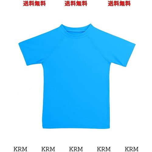 [ESTAMICO] キッズ 半袖 Tシャツ ラッシュガード UVカットUPF+50 男の子 水着(ブルー・100cm/3T)
