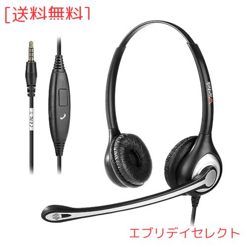 Wantek ヘッドセット3.5mm 両耳 ノイズキャンセリングマイク付きとコール制御 PC用3.5mmヘッドホン Web会議、Skype、オフィス、在宅勤務