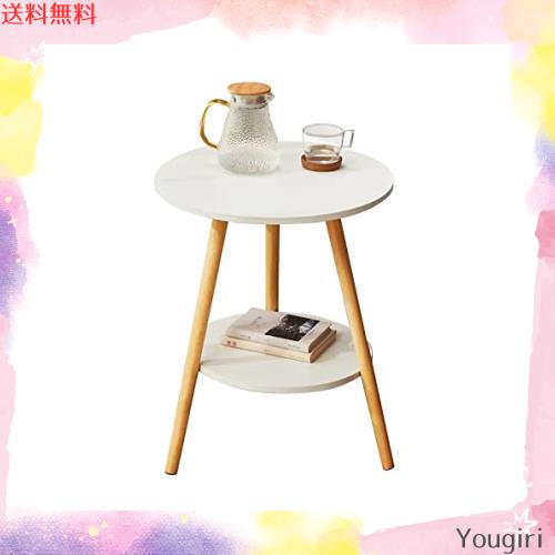 サイドテーブル ベッドテーブル リビングサイドテーブル 棚付 収納 丸形 ナイトテーブル スリム 北欧 おしゃれ (ホワイト, 38*38*55cm)