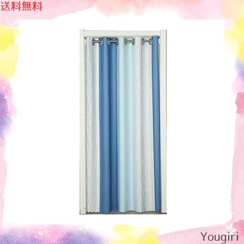 のれん 間仕切り 北欧 ストライプ 混合色 ブルー カーテン 幅120×丈190CM 断熱 保温 アコーディオン ロング 階段 目隠し 仕切り 冷気遮