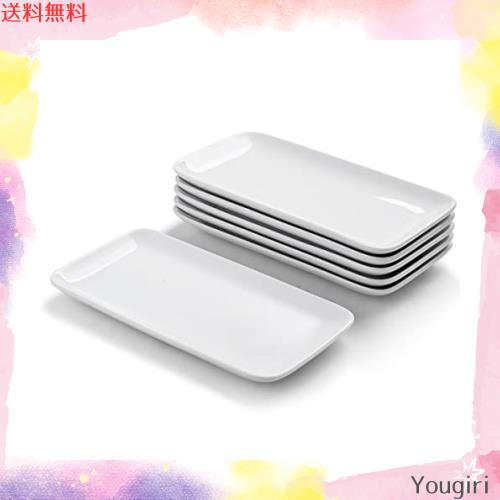 WishDeco 長角皿 6枚セット 焼き物皿 魚 皿 刺身皿 23×12cm お皿セット おしゃれ 焼き魚皿 寿司皿 長皿 長方形 プレート 食器 白 電子レ