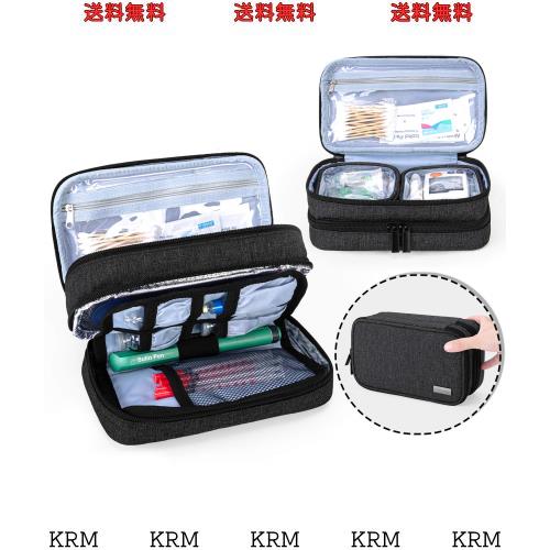 Yarwo インスリンポーチ 2層式 血糖値測定用品 インスリン注射用品 まとめて収納 持ち運び インスリンケース ブラック