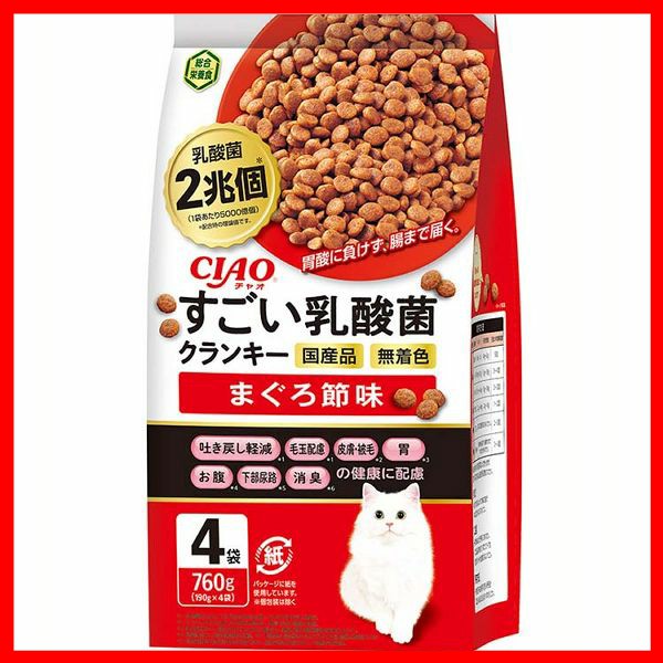 キャットフード ペットフード 猫用品 CIAO すごい乳酸菌クランキー まぐろ節味 P-301 CIAO 猫 乳酸菌 CIAO 毛玉 まぐろ 食べやすい ペット用品 食物繊維 ドライフード