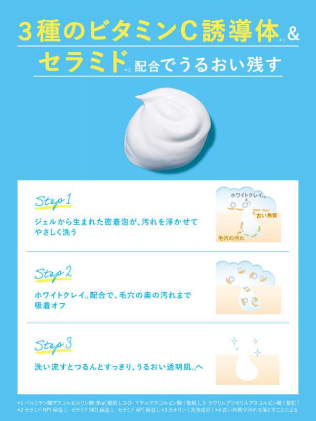 | 水、パルミチン酸、TEA、ステアリン酸、イソペンタン、PG、グリチルリチン酸2K、パルミチン酸アスコルビルリン酸3Na、3-ラウリルグリセリルアスコルビン酸、3-O-エチルアスコルビン酸、リンゴ果実培養細胞エキス、コンフリーカルス培養エキス、サポナリアプミラカルス培養エキス、アルブチン、加水分解コラーゲン、グレープフルーツ果実エキス、サンザシエキス、ナツメ果実エキス、リンゴ果実エキス、レモン果汁、グリセリン、ライム果汁、オレンジ果汁、アラントイン、カオリン、バクチオール、ビサボロール、水溶性コラーゲン、ヘキサカルボキシメチルジペプチドー12、ハマメリス葉エキス、キサンタンガム、アーチチョーク葉エキス、水添レシチン、フィトステロールズ、セラミドNP、セラミドNG、セラミドAP、ペンチレングリコール、BG、イソマルト、ラウリン酸ポリグリセリルー10、レシチン、レモン果皮油、オレンジ果皮油、ラバンデュラハイブリダ油、ローマカミツレ花油、ニオイテンジクアオイ油、パルマローザ油、エンピツビャクシン油、セテス—2、イソブタン、ヒドロキシエチルセルロース、PEG-20水添ヒマシ油、硝酸Na、PEG-115M、アセトン、リン酸2Na、グリオキサール、t-ブタノール、フェノキシエタノール |