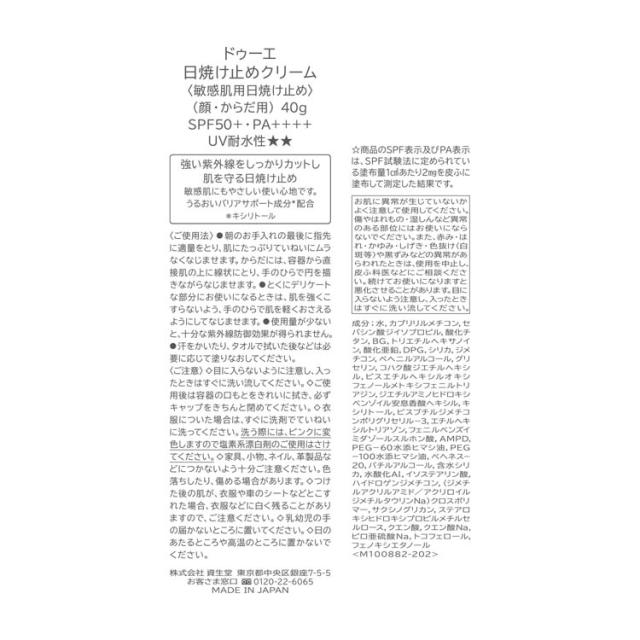 【ドゥーエ 日焼け止めクリームの商品詳細】