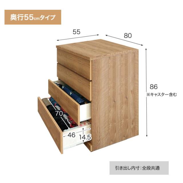 引き出し有効内寸:各段:幅70×奥行46×高さ14.5cm