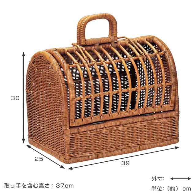 ラタンで編まれた、ナチュラルな風合いがおしゃれなペットキャリーです。お部屋に出しっぱななしにしていてもインテリアに馴染みます。ウサギなどの小動物にもお使いいただけます。