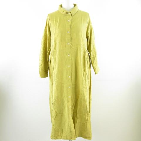 【中古】ゼロハチマブ 08Mab シャツワンピース ロング 長袖 黄 M L *A375 レディース