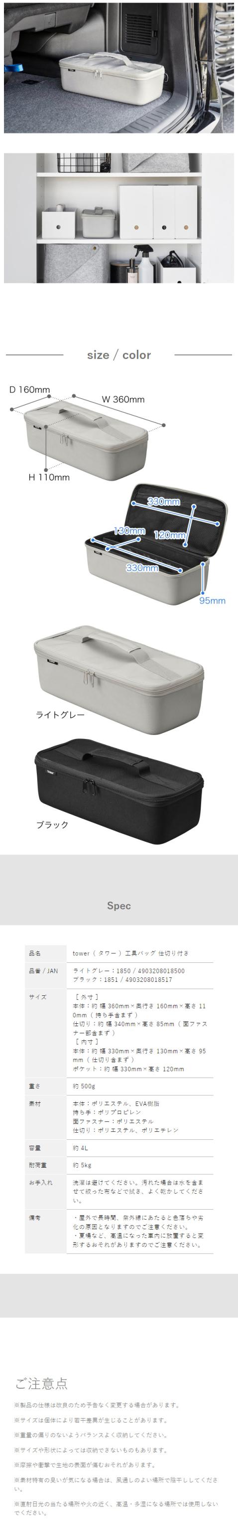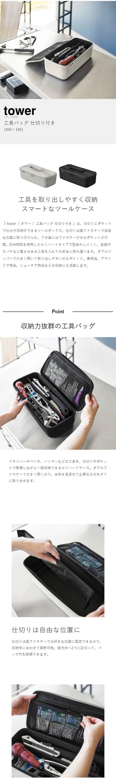 [ 工具バッグ タワー 仕切り付き ]山崎実業 tower 工具箱 工具 バッグ 工具袋 DIY ツールボックス 大容量 工具入れ 収納 仕切り ツール ケース 道具箱 アウトドア おしゃれ モノトーン yamazaki ブラック ライトグレー 1850 1851【送料無料】