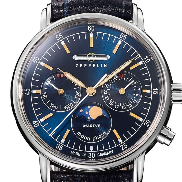 ツェッペリンより、コンパクトな36mmのケースサイズと月の満ち欠けを表示する「ムーンフェイズ」を搭載したコレクション「MARINE(マリーネ)」が登場です。