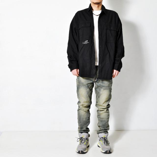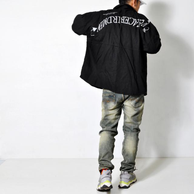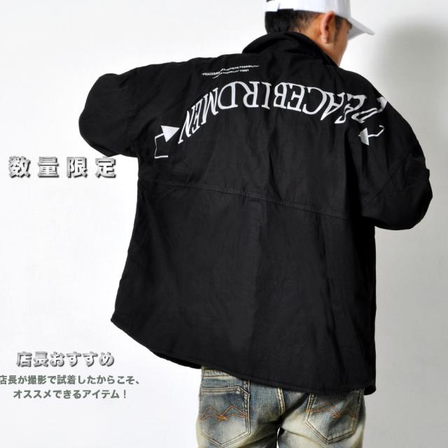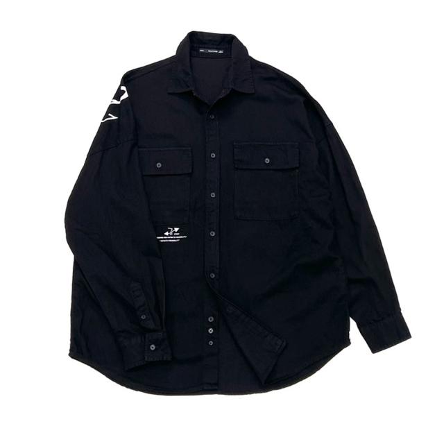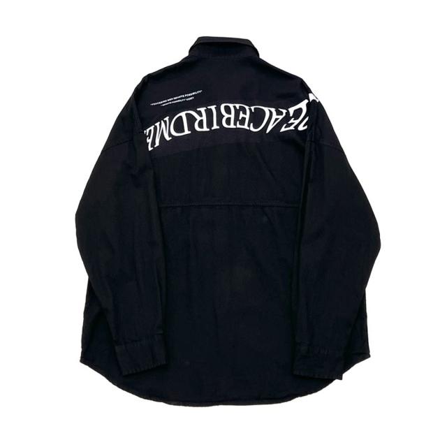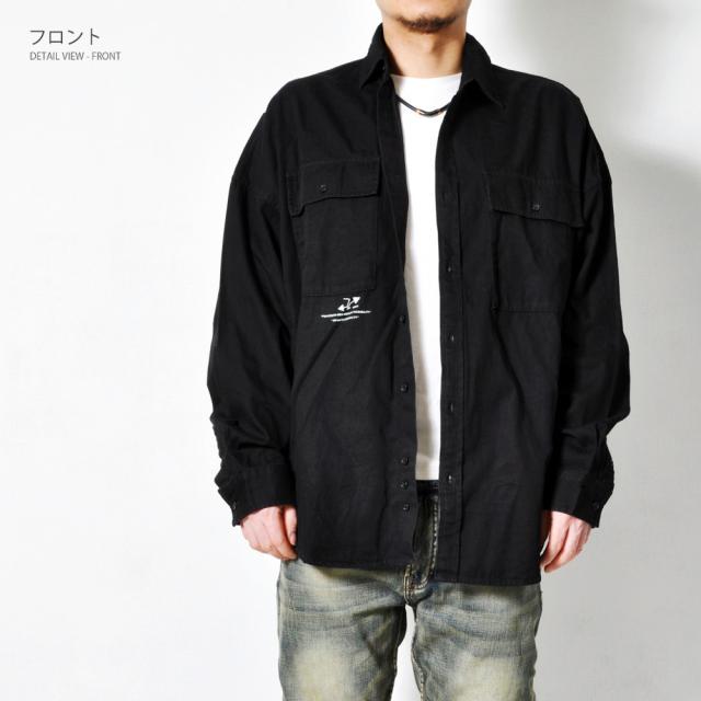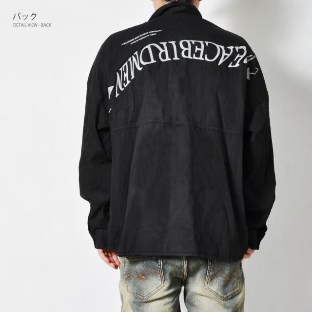 期間限定 SALE 完売御免【送料無料】バックロゴ 長袖シャツ メンズ ボタンシャツ 春秋 ビッグシルエット ストリート 韓国系 トップス #TS423 M便 BL