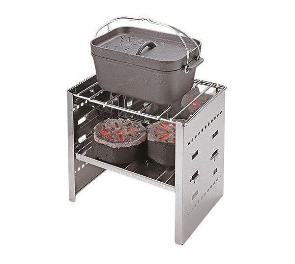 本体・炭受け:ステンレス鋼、ゴトク・アミ・ロックフレーム:鉄(クロムめっき)、収納バッグ:ポリエステル