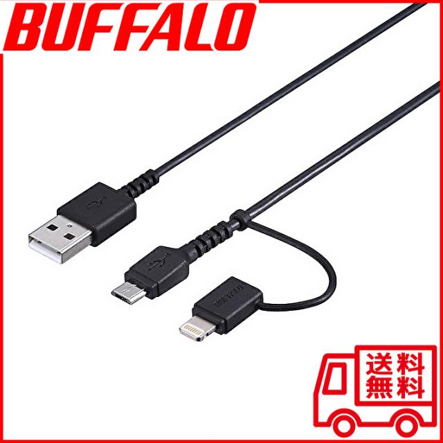 【送料無料】バッファロー Lightning(ライトニング)⇔USB microB 変換アダプター付き急速充電ケーブル USB データ転送 1.0m BUFFALO BSMPCLA210BK ブラック