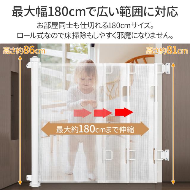 ロールゲート 180cm ベビーゲート 階段上 ロール ロール式 ペットゲート ロールタイプ セーフティーゲート 柔らかい 階段 柵 赤ちゃん 子ども キッチン 玄関 トイレ リビング 仕切り 家事 テレワーク