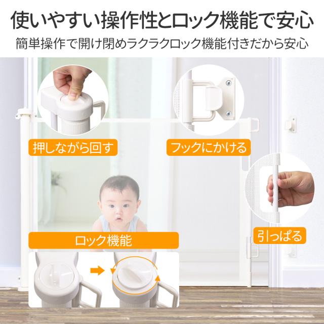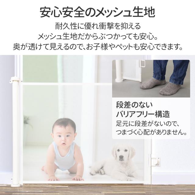 子ども キッズ ベビーゲイト フェンス 犬 ペット ブラック ホワイト グレー コンパクト 収納 仕切り パーテーション バリアフリー 簡単 安全対策 ロール式ゲート 階段用 ネット 子供 こども 赤ちゃん 幼児 乳児 保育園 幼稚園 ロールゲイト
