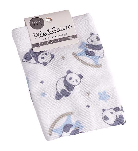 パイルガーゼハンドタオル パンダ柄 30×30cm [色柄指定不可] (100円ショップ 100円均一 100均一 100均)