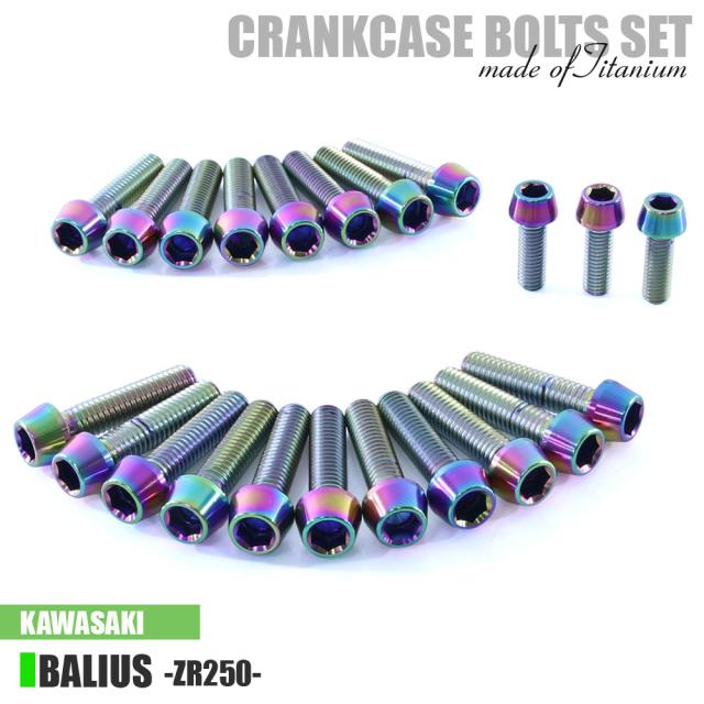 チタンボルト カワサキ バリオス/2専用 ZR250 クランクケース エンジンカバー ボルト セット 22本 焼き色 軽量化 カスタム ネジ レストア