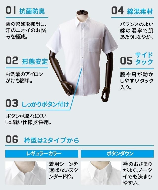 [keyword] メンズファッション 標準サイズ 普通サイズ 首廻り37 首廻り39 首廻り41 首廻り43 抗菌防臭 無地 無地調 柄 かわいい おしゃれ メンズビジネス 男 男性 メンズ オフィス ビジネス 仕事 通勤 [comment] 【生地】ニオイに原因となる繊維上の菌の増殖を抑制。汗のニオイのお悩みを軽減します。洗濯後もシワになりにくいのでお手入れも簡単。【仕様・取り扱い】形態安定加工を施してありますので、お取り扱い楽々です。【シルエット】標準シルエット