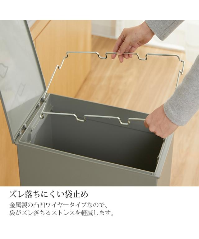 ●材質:本体・フタ・キャスター=ポリプロピレン、袋止め=鋼(三価ユニクロメッキ)、ワク=ABS樹脂※ポリ袋は45L(65×80cm)以上、または取っ手付きポリ袋LLサイズ(45×54cm)以上に対応しています。 原産国:●日本製 備考:<梱包サイズ> ■縦×横×高さ:46.5×24×58cm 重量:2.16kg