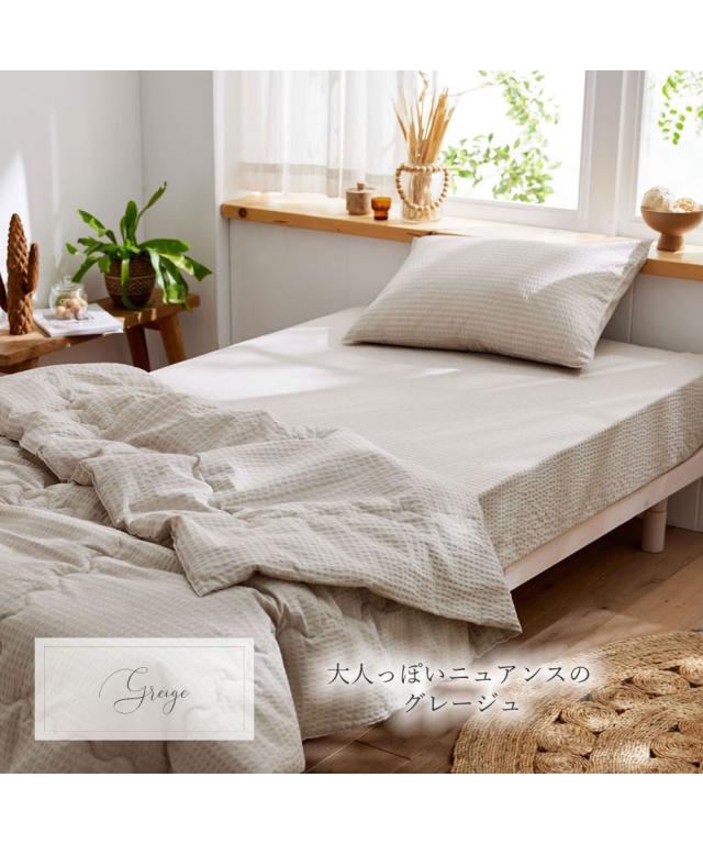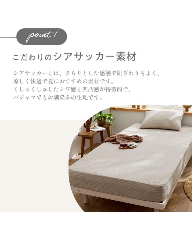[keyword] インテリア 涼感 暑さ対策 夏 涼しい クール 手洗いOK 洗える 洗濯 洗濯機洗いOK マシンウォッシャブル 綿100% コットン100% 綿素材 綿 コットン 生地 無地 無地調 柄 かわいい おしゃれ ナチュラル ベーシック シンプル 定番 寝室 ベッドルーム 夏用 サマー 一人暮らし 大学生 社会人 ワンルーム 1K 1DK 新生活 春 秋 冬 [comment] 夏の定番素材でもあるシアサッカー!ポコポコとした凹凸がサラリと快適なシリーズです!優しい色合いがお部屋に馴染むシーツです。