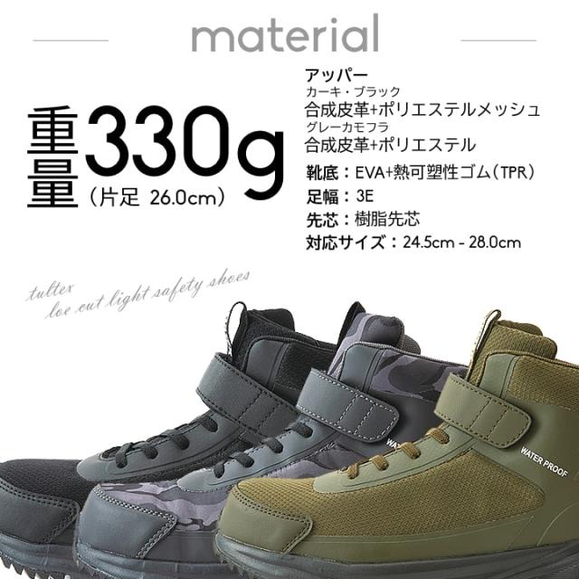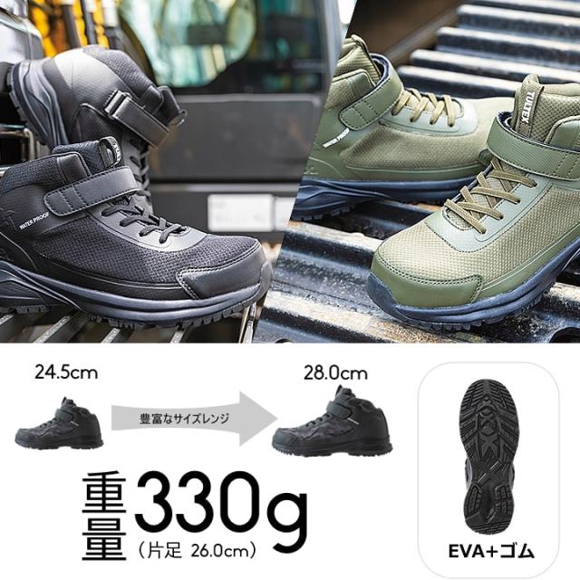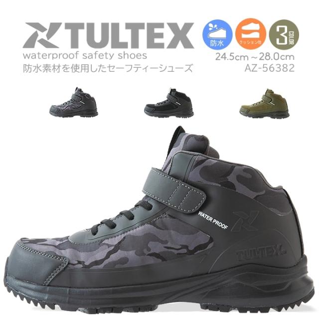 【即日発送】安全靴 スニーカー ミドルカット タルテックス az-56382 防水 軽量 クッション性 ゴム紐 セーフティーシューズ TULTEX メンズ レディース 作業靴