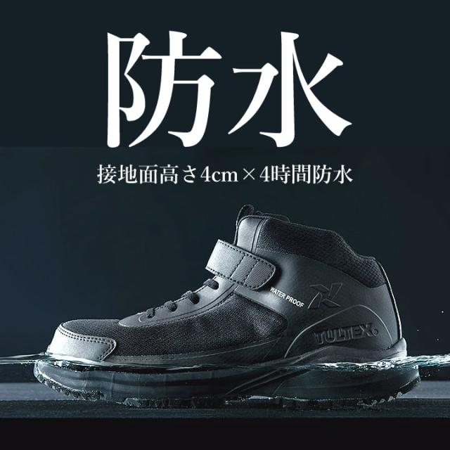 接地面高さ4cm×4時間の防水機能を搭載したミドルカットセーフティーシューズ