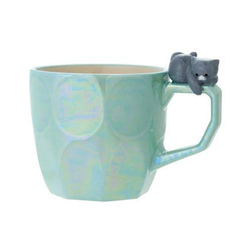ハンドルにのった小さな猫がじゃれつくかわいいマグカップ