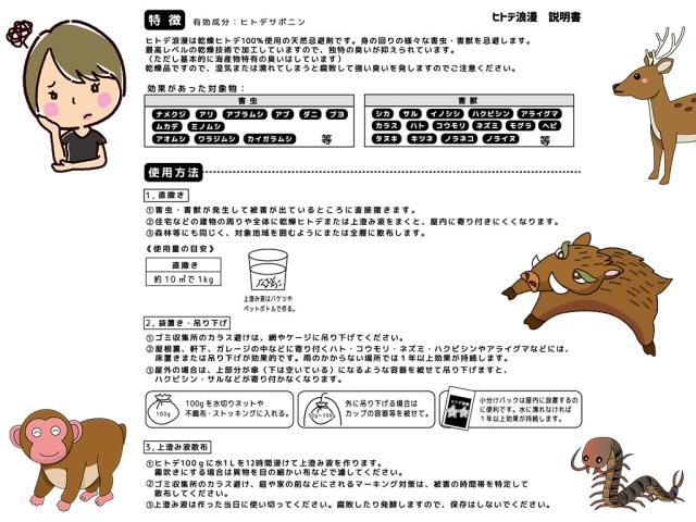●殺虫剤ではないので動物を殺さずに忌避します。