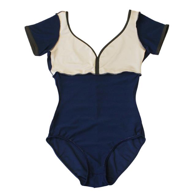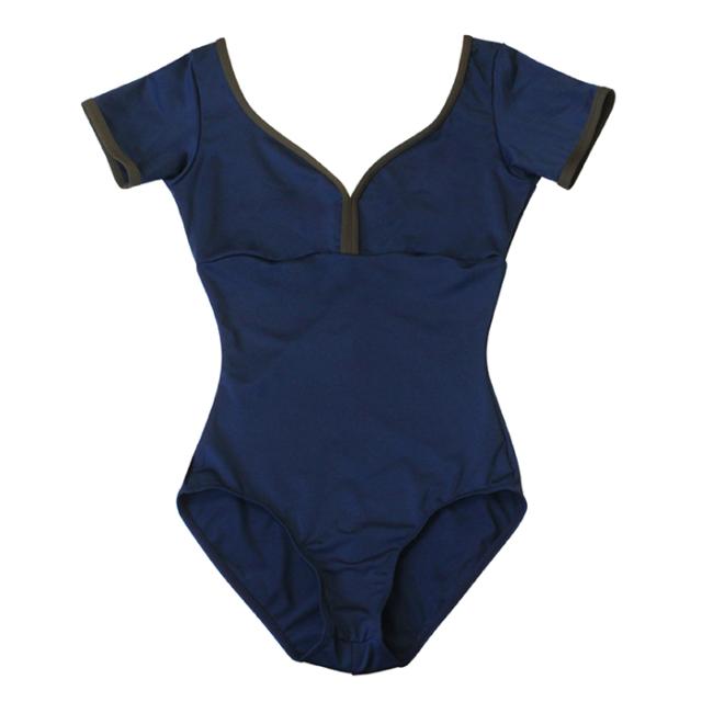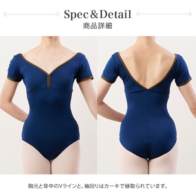 【20%off・在庫特価】バレエ レオタード 大人 スカートなし 日本製 プレーヌ バイカラー ショートスリーブ 半袖 キャップスリーブ スポーティー レッスン 練習 着 シンプル 紺 カーキ ジュニア 145 150 155 160 165 170