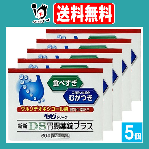 【第2類医薬品】新新DS胃腸薬錠プラス 60錠×5個セット【新新薬品工業】食べすぎ・二日酔いなどのむかつきに ウルソデオキシコール酸配合 健胃生薬 胃腸薬 ベッセンシリーズ