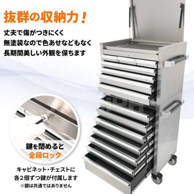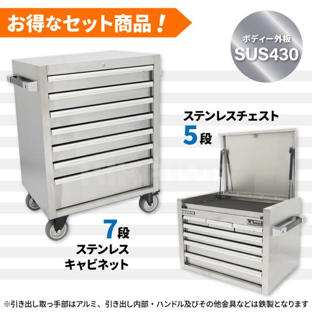 ローラーキャビネット ステンレス キャビネット7段&チェスト5段セット ロールキャビネット ツールボックス ツールキャビネット 工具箱 KIKAIYA