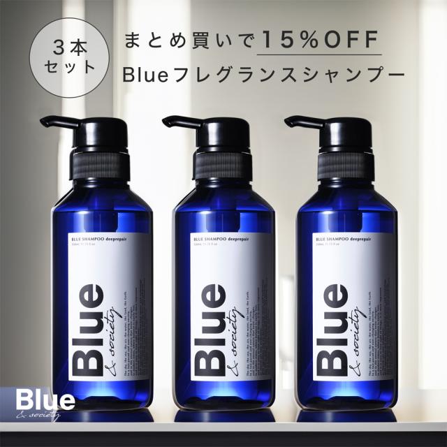 香水シャンプー 3本セット メンズ 美容室専売品 オーガニック シャンプーセット アミノ酸シャンプー シアージャスミンの香り Blue 325ml