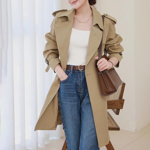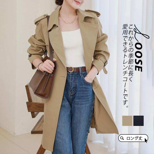 【水曜日まで!10%クーポン配布中】 トレンチコート レディース ジャケット アウター コート スプリングコート ボタンダウン 通勤 細身 オフィス ロング丈 カジュア