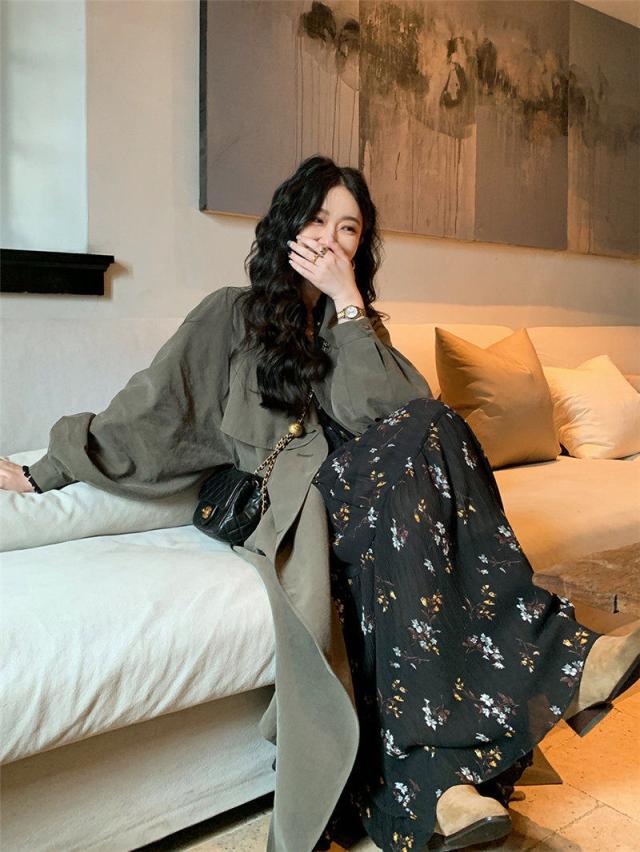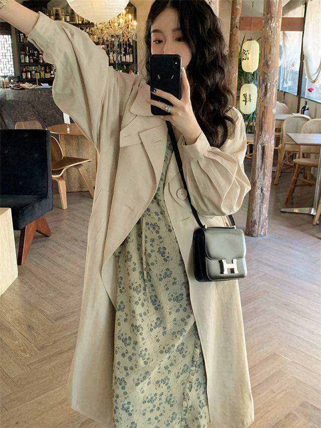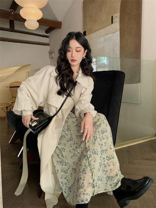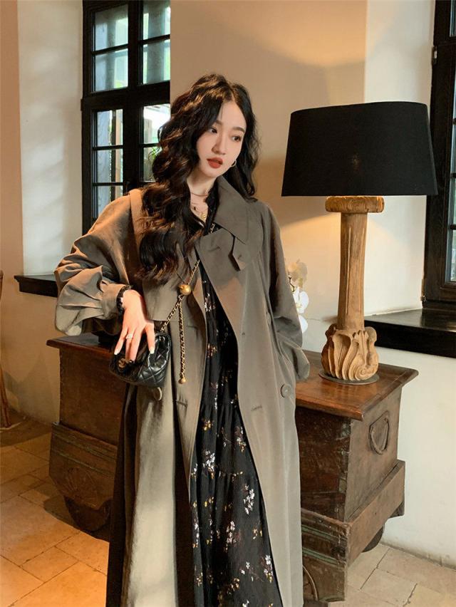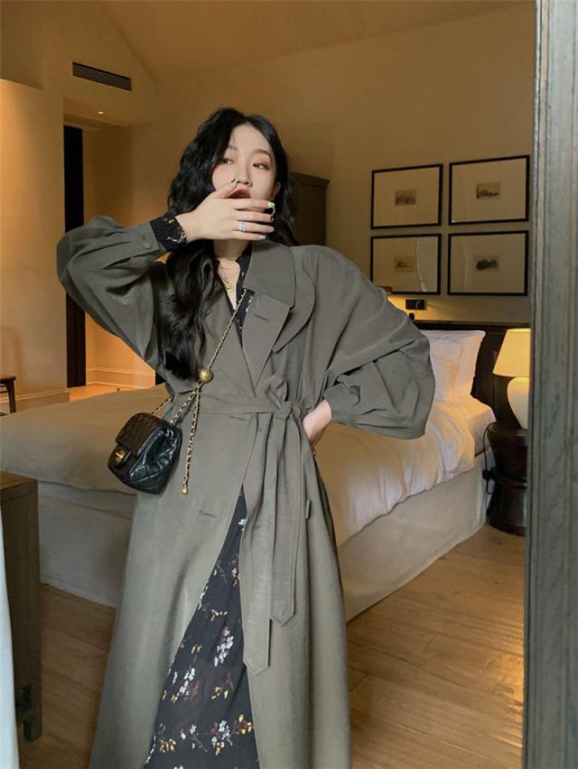 【~4/20まで P2倍+限定クーポン】 トレンチコート レディース ジャケット アウター コート スプリングコート ロング丈 折襟 無地 カジュアル 細身 着痩せ 秋コー