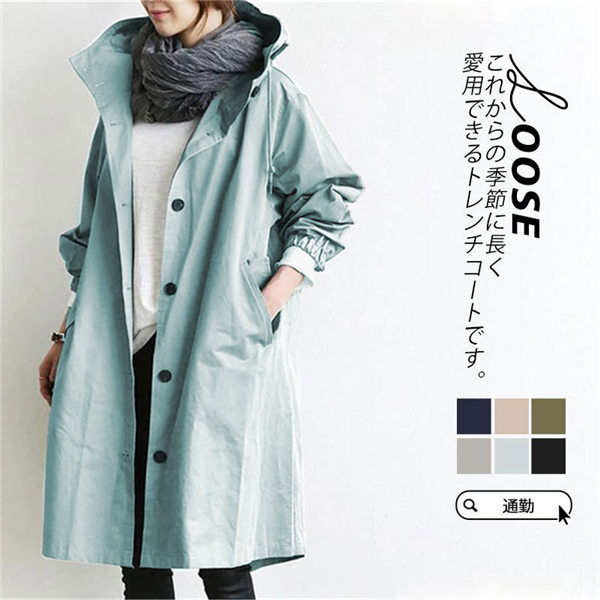 【~4/20まで P2倍+限定クーポン】 トレンチコート レディース ジャケット アウター コート スプリングコート 薄手 ロング丈 フード付き カジュアル ゆったり 秋コ
