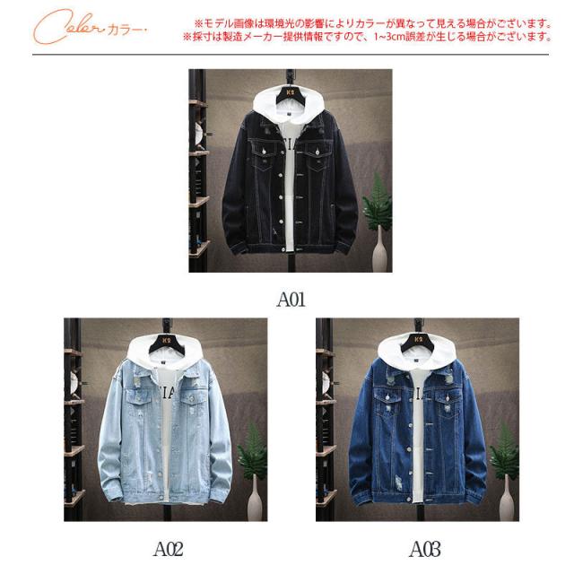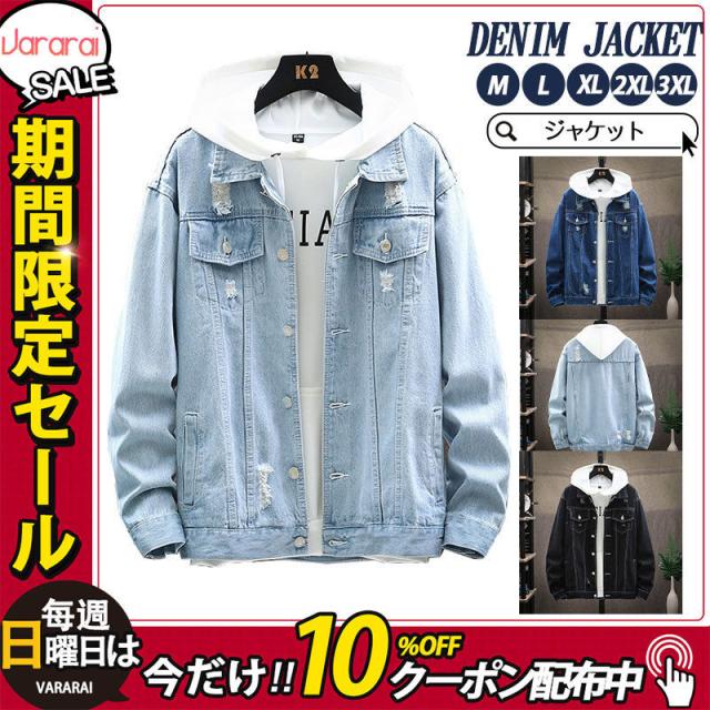 【~4/30まで P5倍+限定クーポン】 デニムジャケット メンズ ジャケット デニム ジージャン デニムコート ブルゾン トップス 通学 秋服 おしゃれ ダメージ加工 ボ