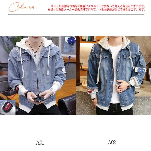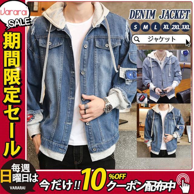 【~4/20まで P2倍+限定クーポン】 デニムジャケット メンズ ジャケット デニムコート パーカー ブルゾン ダメージ加工 トップス フード付き 秋服 ジージャン 重ね