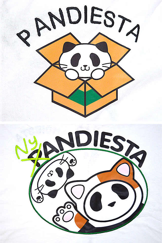 左胸には段ボールの中から顔を覗かせる『にゃんディエスタ』を配置し、前後共にモチーフは刺繍とプリントで施しています。