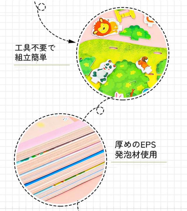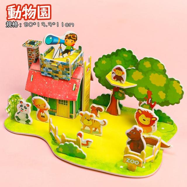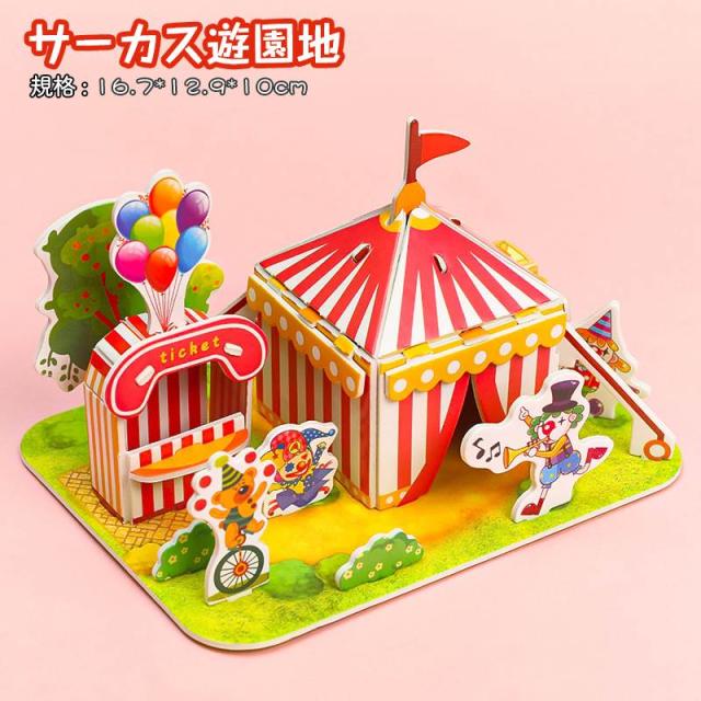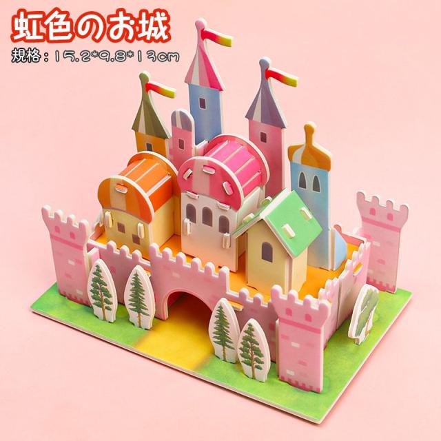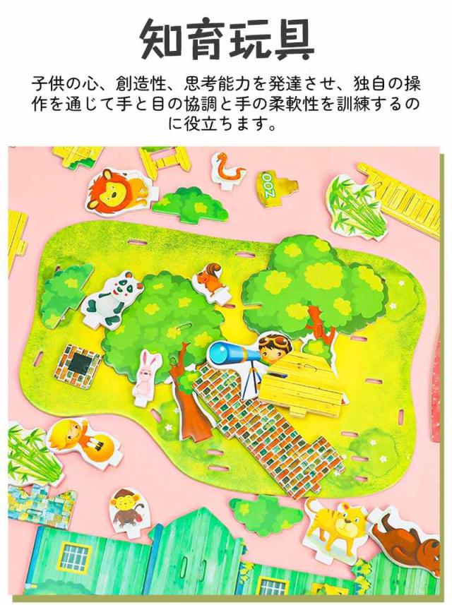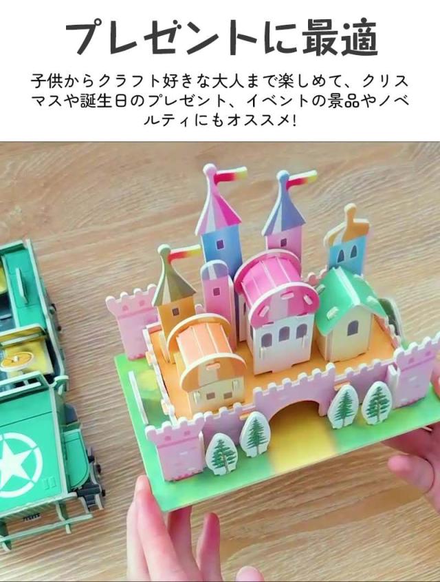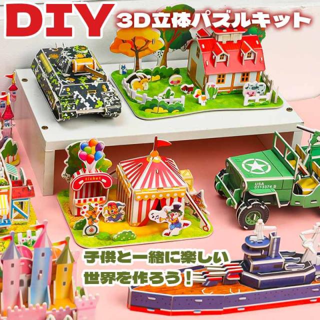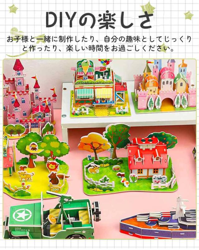立体パズル プレゼント ダンボール 形合わせ 工作 キット DIY おもちゃ 知育 学習玩具 カラフル かわいい 動物 城 戦車 組み立て 知育玩具