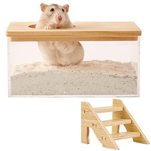 ハムスター砂場 ハムスタートイレ 清潔トイレ ステップ付き 小動物用バスハウスお風呂 透明 ゆったりサイズ 飛び散り防止 砂浴び 遊び場